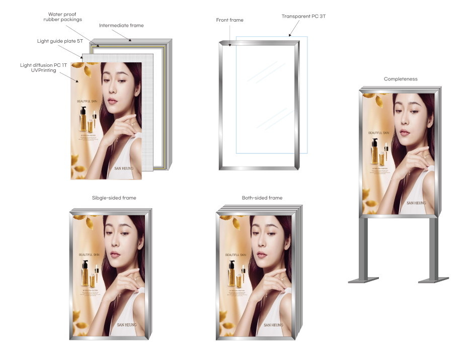 LED直接光源会增加高功耗、眼睛疲劳和夜间过度亮度干扰行人或司机。由于我们的核心技术光泽片是向整个面发光的间接照明,因此几乎没有光散射,也没有因光引起的眼睛疲劳,因此当用作LED广告媒体使用时,您可以期待夜间的最佳广告效果。